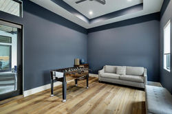 Amazing custom contemporary home with high-end, designer finishes. Incredible exterior accented with steel & glass doors and front porch. Dual entry doors open to the foyer with a staircase featuring custom railing. Large study that overlooks the front and steel/doors to match entry, custom bookcases & stone countertop. Open concept family room and kitchen with views of the loggia (Coyote grill, fireplace), heated pool and turfed backyard. The family room features wood beams, folding glass wall. Chef’s kitchen features Sub-Zero, Wolf, Walk-in pantry, oversized island & breakfast room. A wet bar with wine fridge. There is a 5th bedroom with a full bath on the 1st floor. Upstairs features master bedroom with coffee bar, large closets, spa bathroom. Four additional bedrooms with ensuite baths. A game room with custom built-ins. Extras include Mudroom with lockers, elevator capable, speakers throughout, custom outdoor lighting, tons of storage, custom shades.